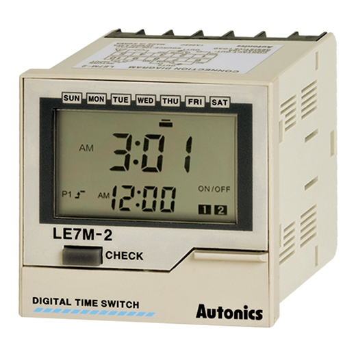 تایمرهای هفتگی/سالیانه دیجیتال سری LE7M آتونیکس قابلیت کنترل و تنظیم زمان با واحد هفته یا سال را به کاربر ارائه می کند. تنظیم ساده و مانیتورینگ وضعیت به وسیله تایمر هفتگی با قابلیت برنامه ریزی 48 مرحله ای و سالیانه با قابلیت برنامه ریزی 24 مرحله ای امکان پذیر می باشد. فانکشن های متنوع شامل فانکشن ذخیره نور خورشید در دسترس می باشند. این سری از تایمرهای آتونیکس دارای 2 عدد خروجی کنتاکت رله مستقل از یکدیگر می باشند.