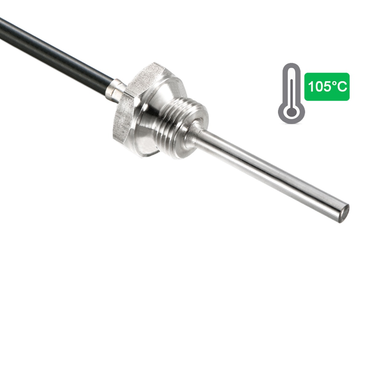 این نوع سنسور دما دارای رزوه G1/2 اینچ و طول پراب متغیر با قابلیت نصب رنج وسیعی از مقاومت های RTD مانند PT100 و PT1000 و NTC و همچنین انواع ترموکوپل را داراست.